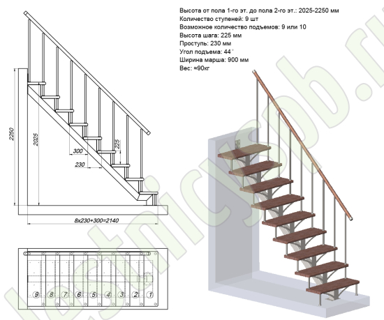 Ширина марша 900 мм