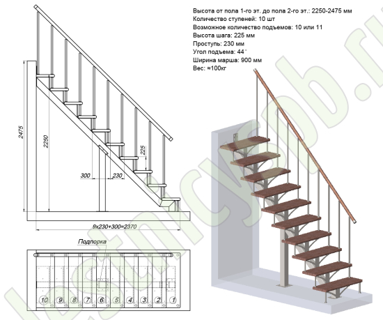 Высота лестницы 2250 - 2475 мм