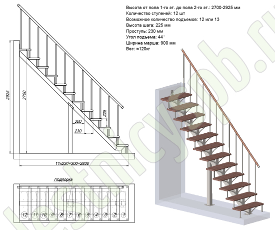 Возможно изготовление лестницы по индивидуальным размерам от 4 недель