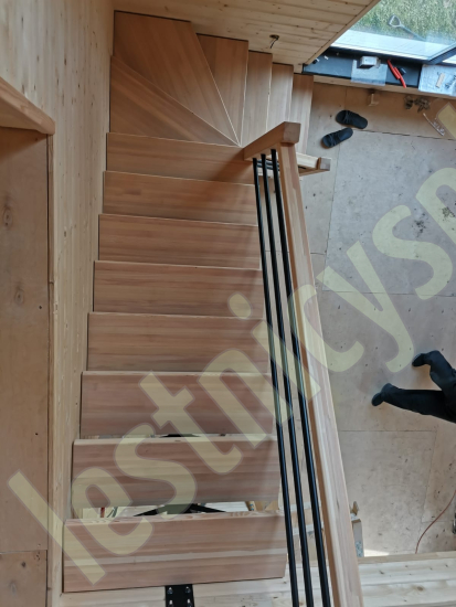 Поворот на 90° реализован посредством поворотных ступеней, высота поворота определяется параметрами вашего помещения и размерами проёма.