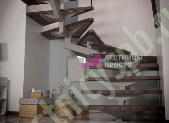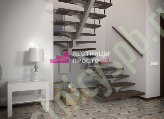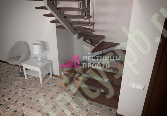 Конструкция представляет собой стальной монокосоур, на который крепятся ступени из выбранной породы дерева.