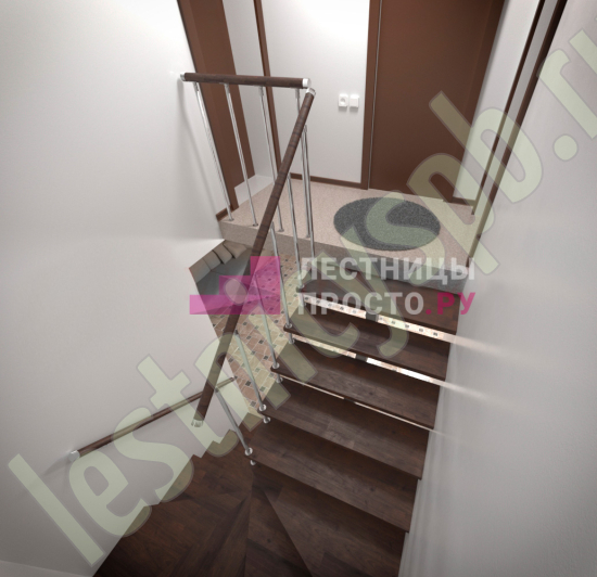 Поворот реализован посредством поворотных ступеней, высота поворота определяется параметрами вашего помещения и размерами проёма.