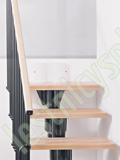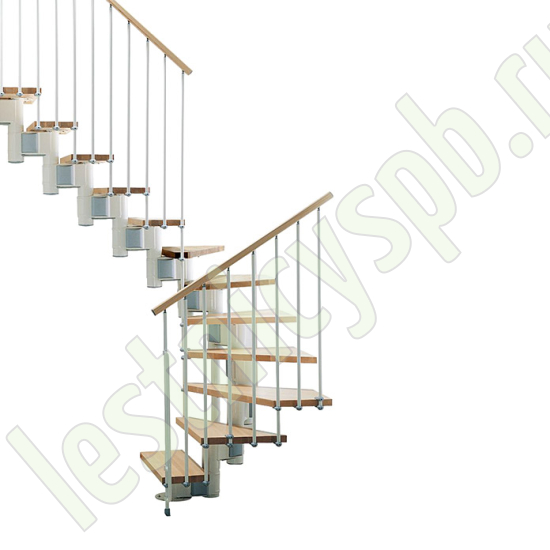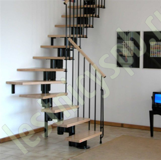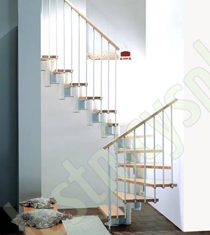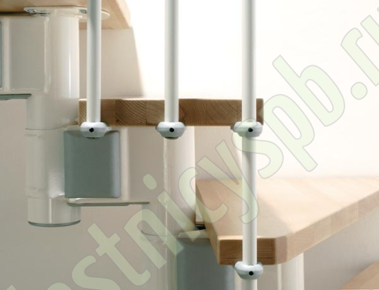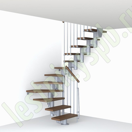 При монтаже этой лестницы, возможно регулировать высоту и глубину шага, таким образом можно получить лестницу под высоты этажа в диапазоне 2250 - 3030 мм, кроме того, установив дополнительный комплект увеличения высоты, можно поднять высоту лестницы до 3730 мм. Ширина проступи регулируется при монтаже в пределах 180 - 220 мм. Каркас и стойки ограждения выполнены из пластифицированного металла. Уникальный модульный каркас позволяет собрать лестницу необходимой формы.