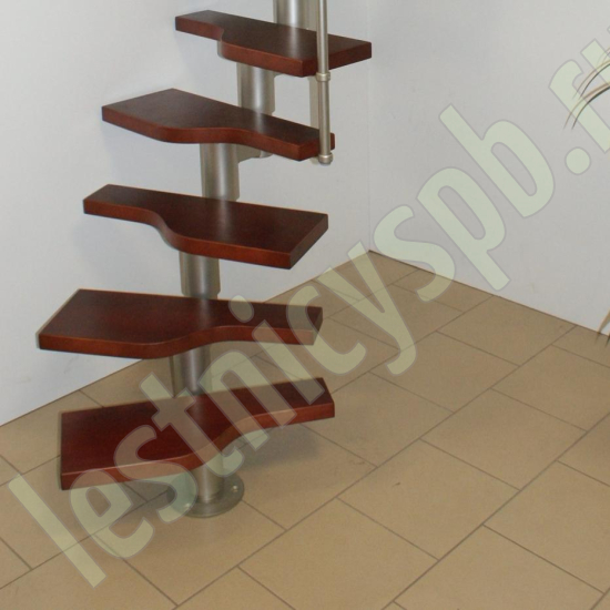 При монтаже этой лестницы, возможно регулировать высоту и глубину шага, таким образом можно получить лестницу под высоты этажа в диапазоне 2220 - 3000 мм. Ступени лестницы выполнены из сращенной ольхи и тонированы защитным лаком.
