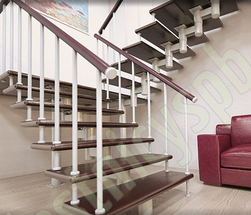 Каркас лестницы представляет собой набор модулей, которые комплектуются уже готовыми к монтажу.