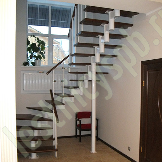 Каркас лестницы представляет собой набор модулей, которые комплектуются уже готовыми к монтажу.