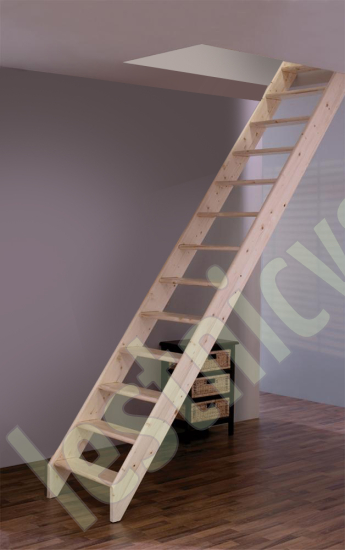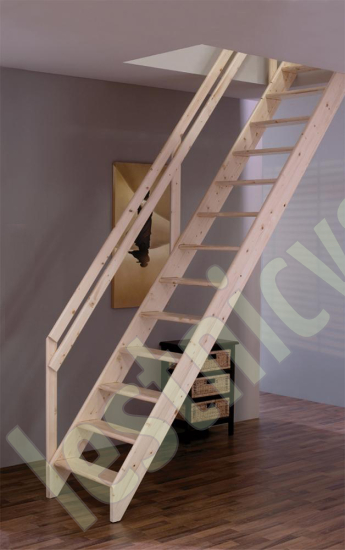 | Мансардная лестница из ели М-012У с поручнем |
