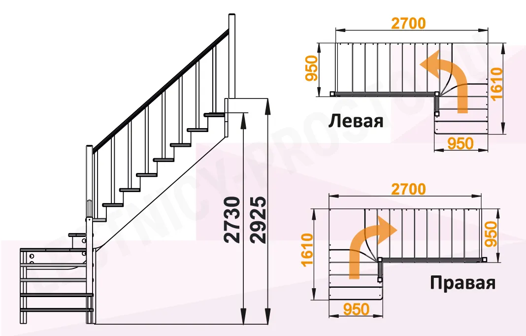 Высота лестницы 2730 - 2925 мм