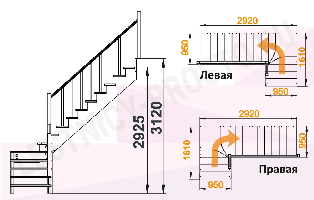 Высота лестницы 2925 - 3120 мм