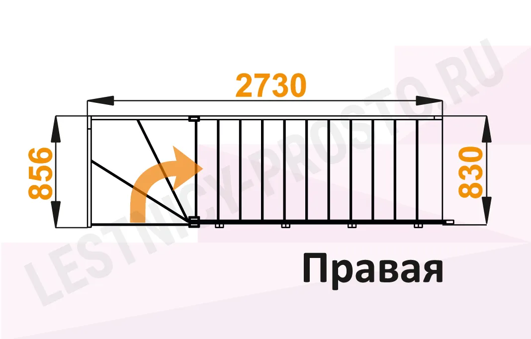 Габариты в плане 2730 × 856 мм