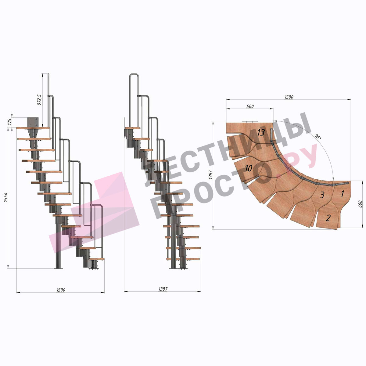 Высота лестницы 1800 - 2640 (10 ступеней) мм
