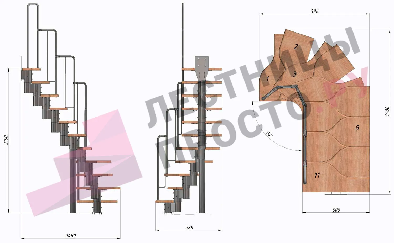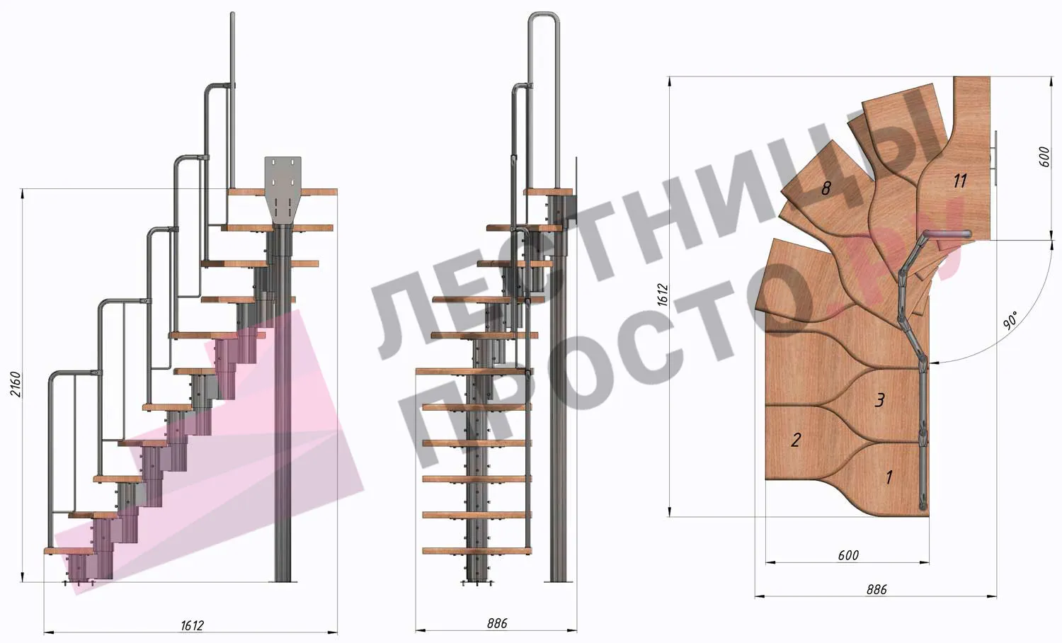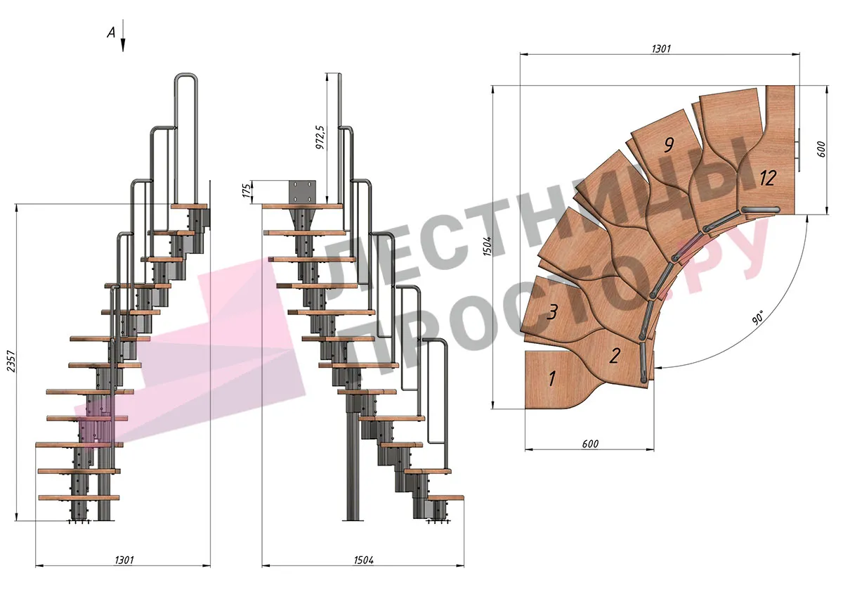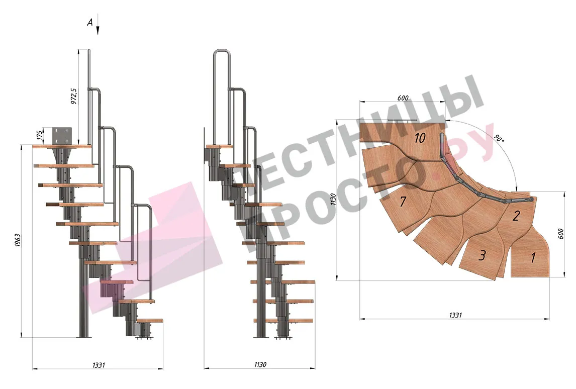 Высота лестницы 1800 - 3360 мм
