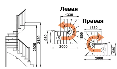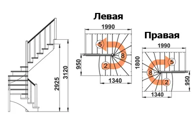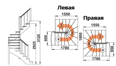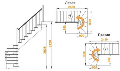 Высота лестницы 2925 - 3120 мм