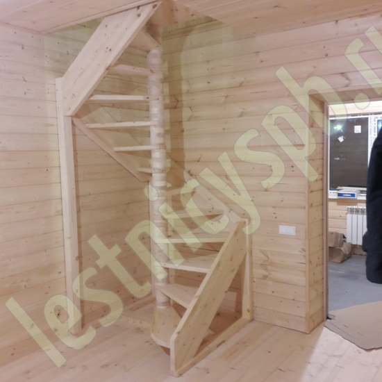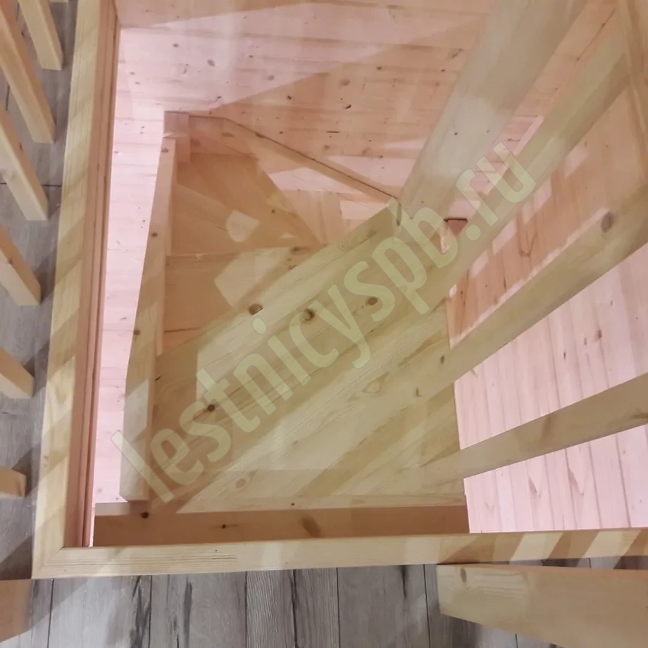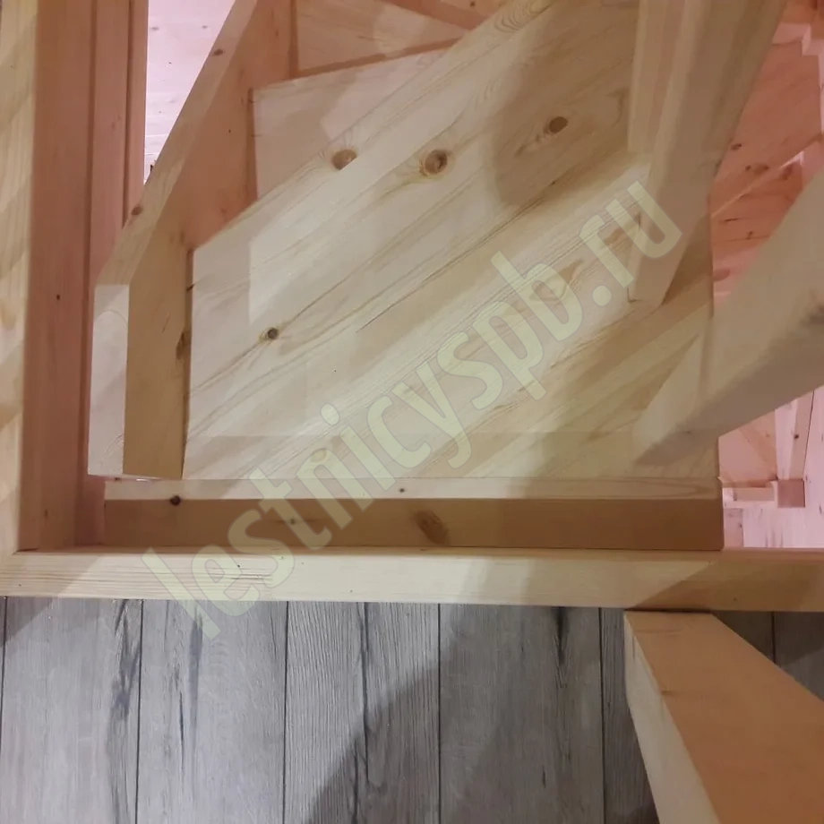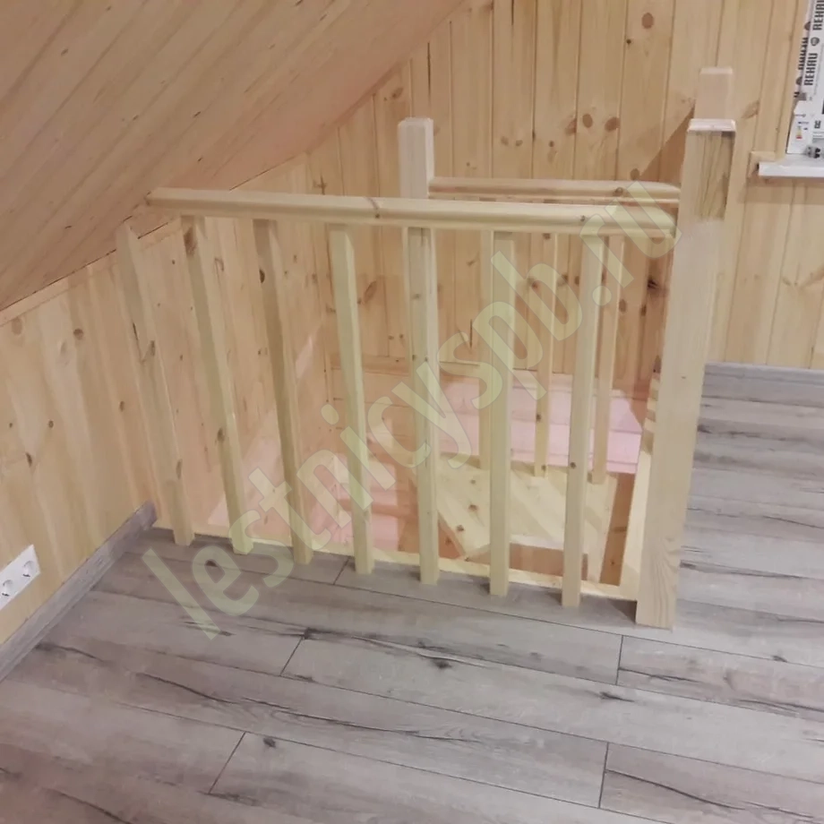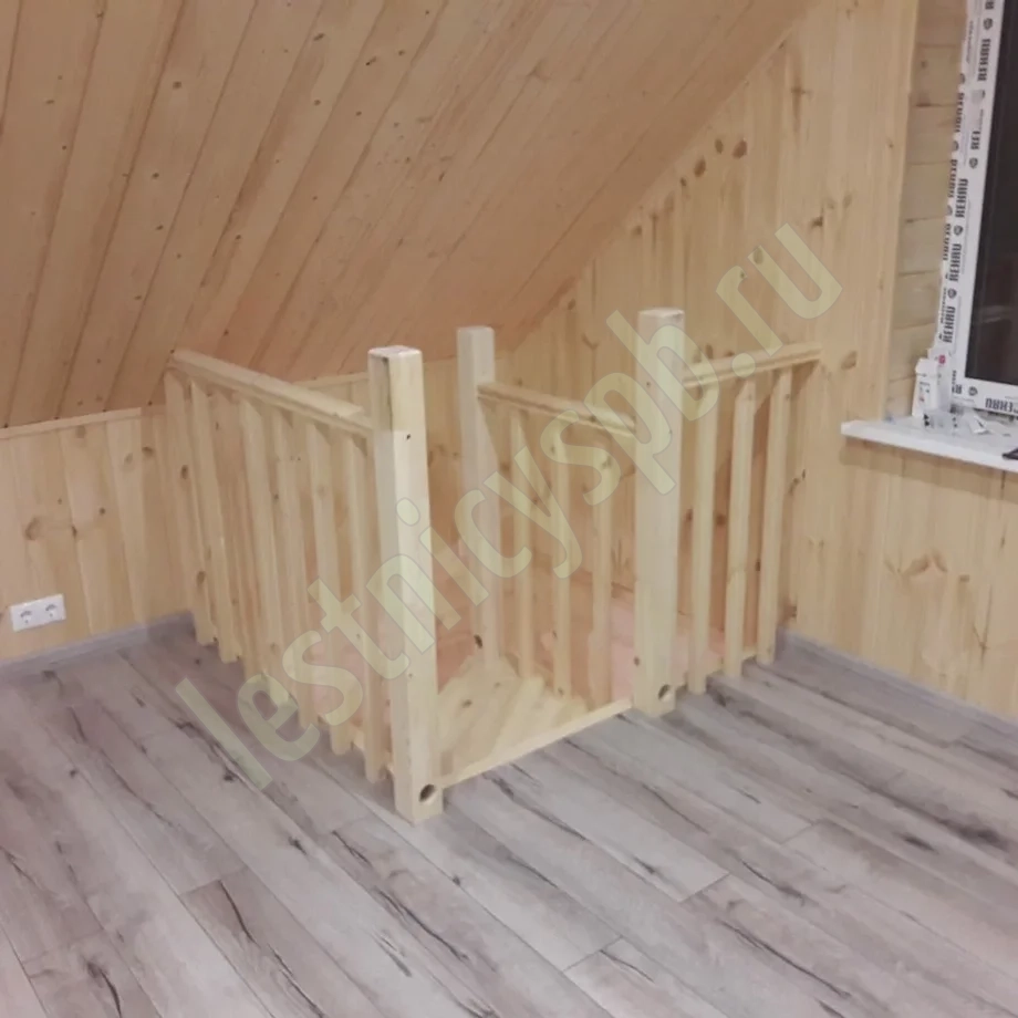 Небольшая аккуратная лестница, хорошо подойдет для помещения с небольшим проемом, поможет сэкономить пространство и организовать комфортный подъем на уровень выше. Возможны варианты лестницы из сосны под покраску, сосны, дуба, бука или ясеня. Для увеличения срока эксплуатации мы рекомендуем покрыть элементы лестницы защитным средством. Вы можете сделать это самостоятельно или заказать предварительное покрытие необходимым средством (или тонирование) в нашем цеху.