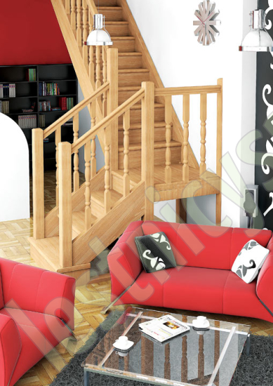 Лестница поставляется в разобранном виде, упакованной в два ящика. Базовый комплект включает в себя деревянные элементы лестницы, подступенки и ограждения без какого-либо покрытия.