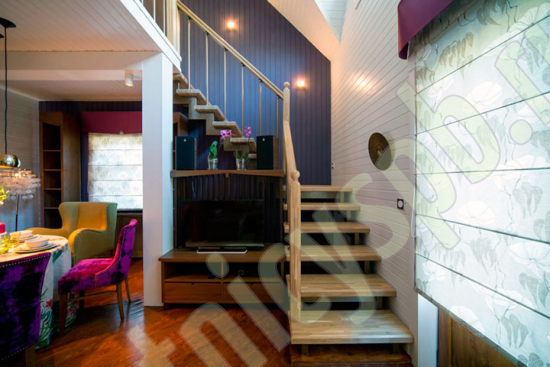 Ступени лестницы выполнены из сращенного щита категории АВ без какого-либо покрытия. Вы можете заказать у нас предварительную профессиональную покраску деревянных элементов лестницы и ограждения в любой цвет.