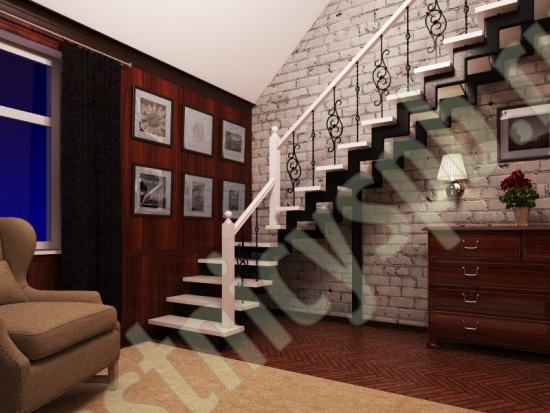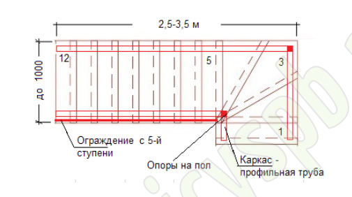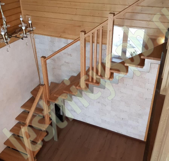 У данного варианта лестницы поворот реализован через забежные ступени. Под заказ возможно изготовление каркаса под поворотную площадку.