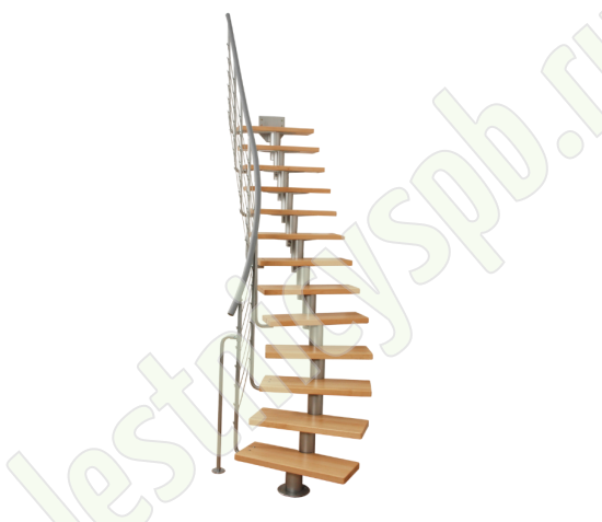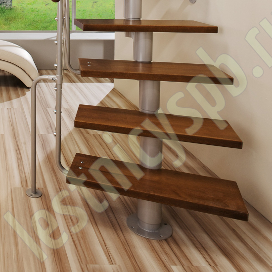 Лестница на стальном модульном каркасе. Высота лестницы регулируется при сборке засчет регулировки высоты шага. Ступени покрыты защитным лаком. Ограждение из стали с пластиковым поручнем. В комплект входят перила с вертикальными стойками и горизонтальными перегородками. Изделие поставляется с шурупами (кроме потолочных и напольных анкеров), инструкциями по монтажу и эксплуатации и гарантией. Внимание! Для этой лестницы необходимо крепление к стене.