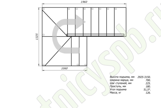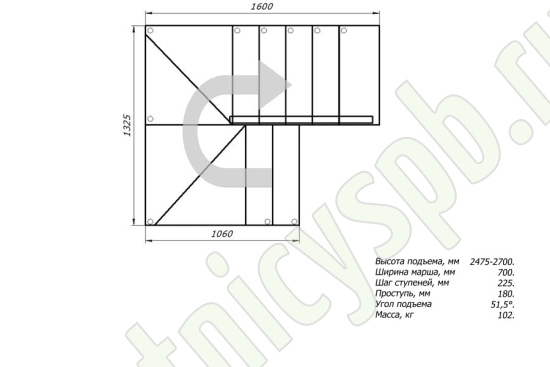 Высота лестницы 2025 - 3375 мм
