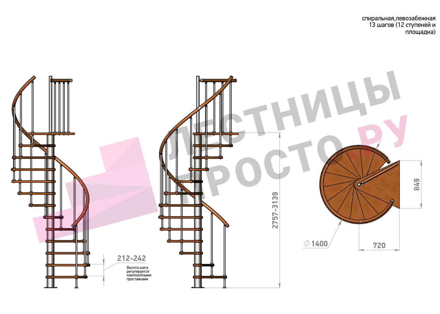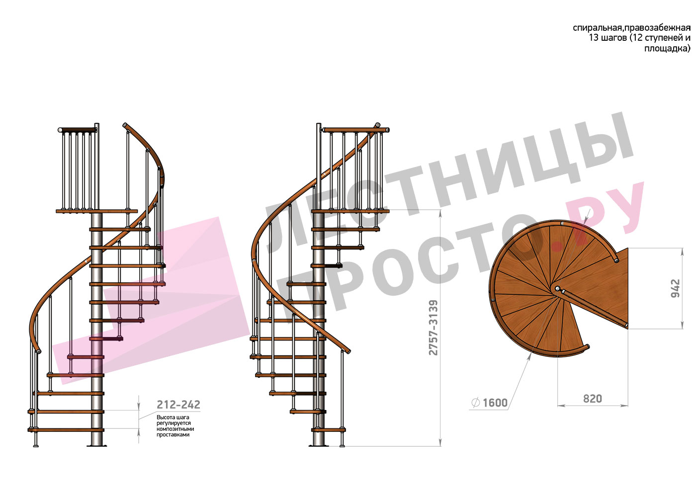 Высота лестницы 2757 - 3139 (12 ступеней) мм