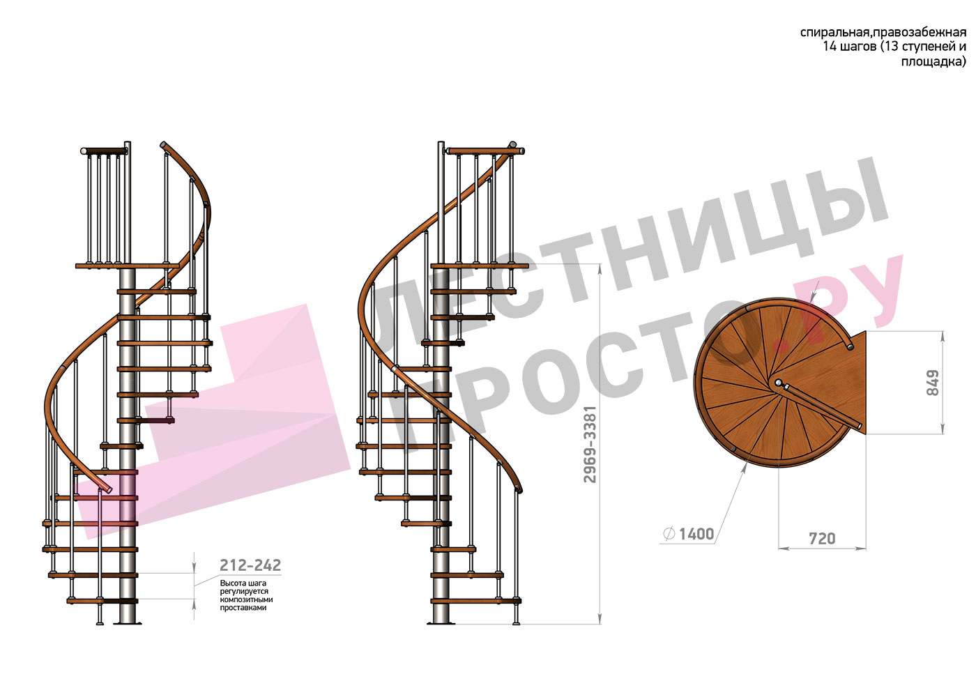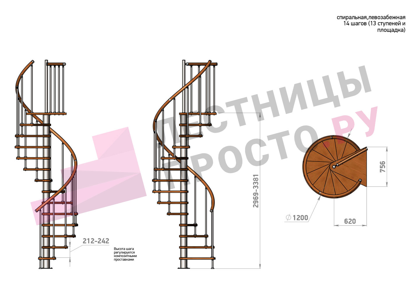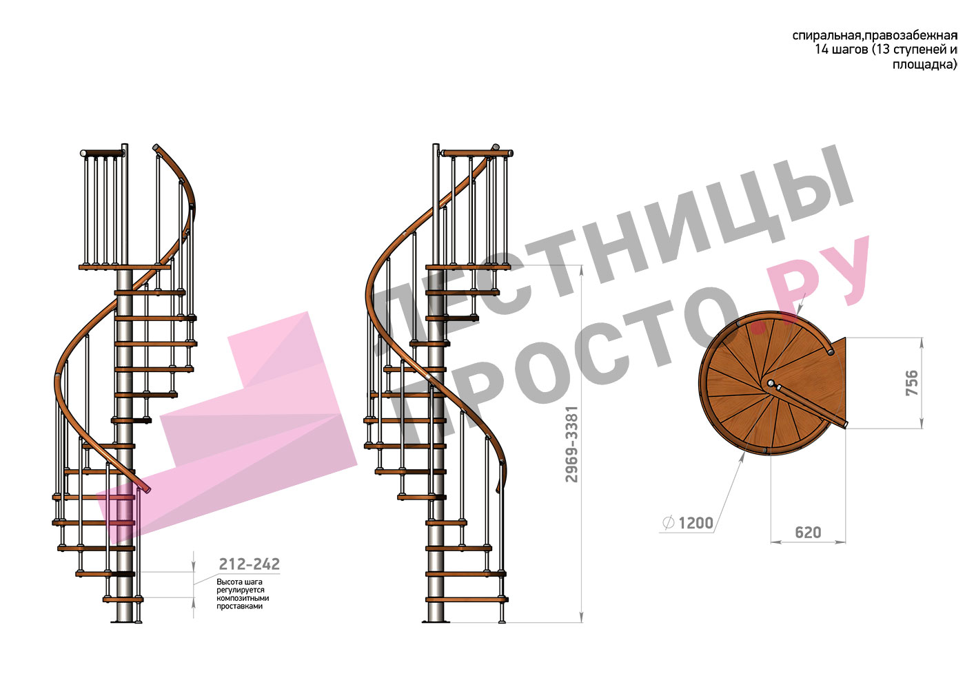 Высота лестницы 2969 - 3381 (13 ступеней) мм