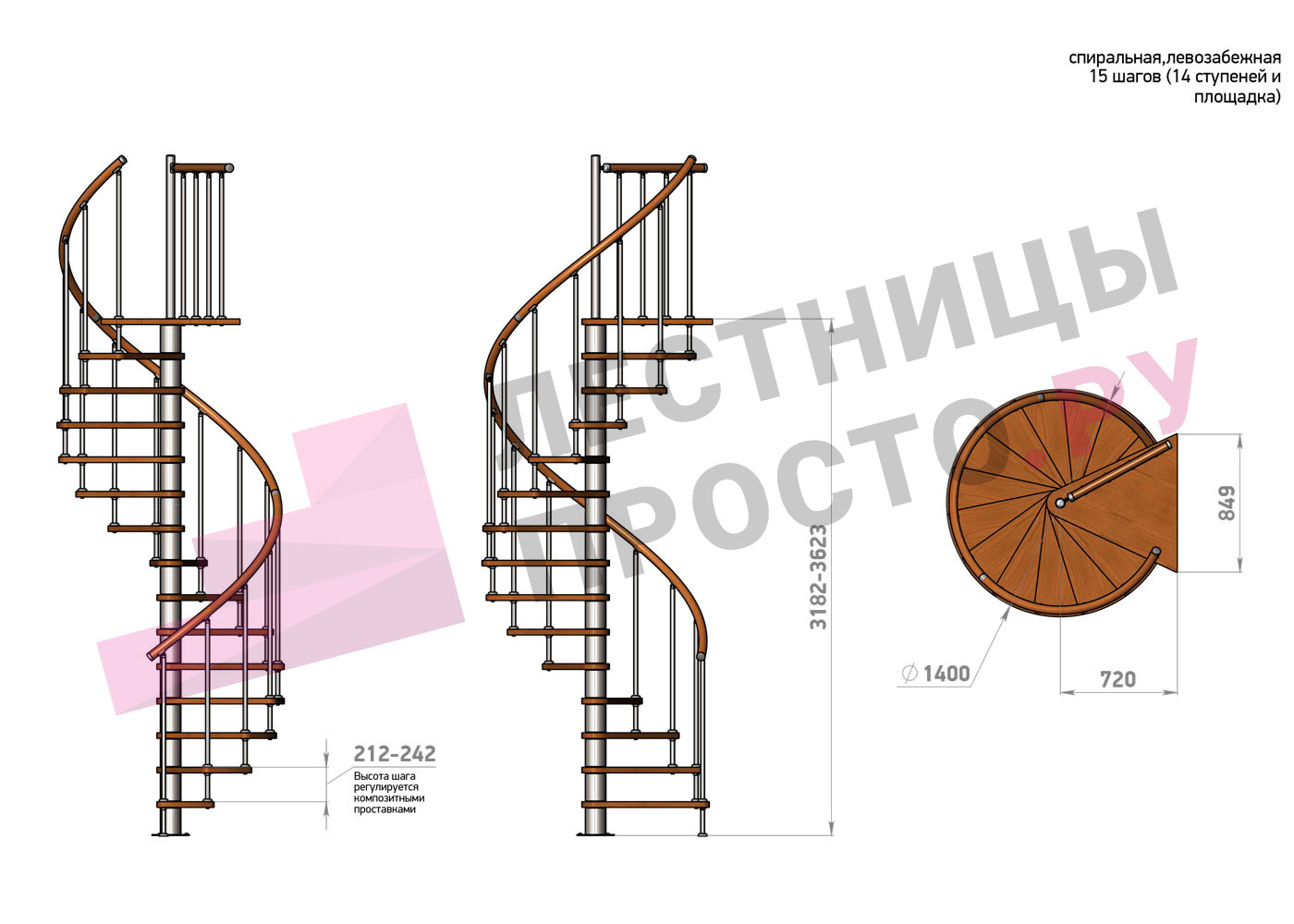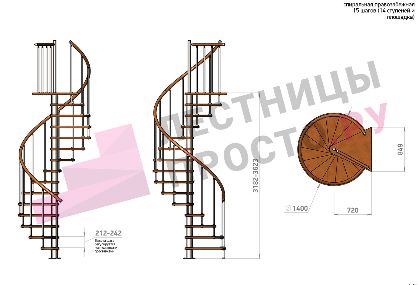 Высота лестницы 3182 - 3623 (14 ступеней) мм