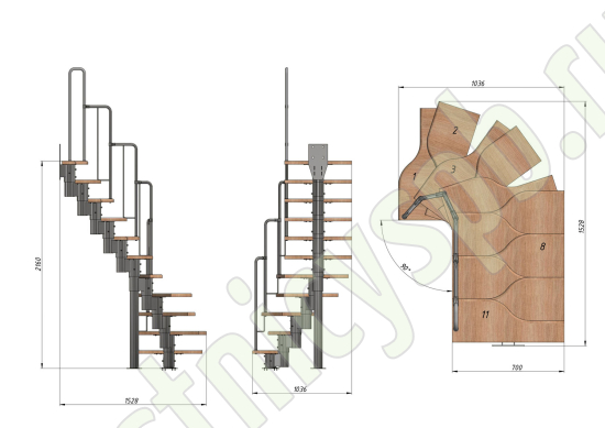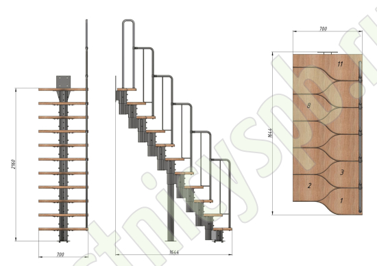 Высота лестницы 1980 - 2880 (11 ступеней) мм