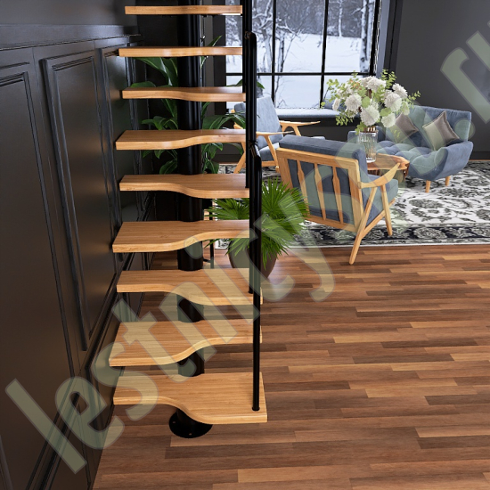 соответствует картинке, но вы не ограничены в его выборе. Лестницу можно приобрести и без ограждения, и с любым другим. Устанавливать на такую лестницу можно почти всё, начиная от классических деревянных балясин и заканчивая эксклюзивными коваными изделиями.