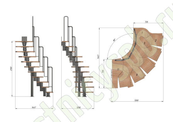 Высота лестницы 1980 - 2880 (11 ступеней) мм