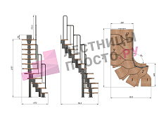 Высота лестницы 2160 - 3120 (12 ступеней) мм