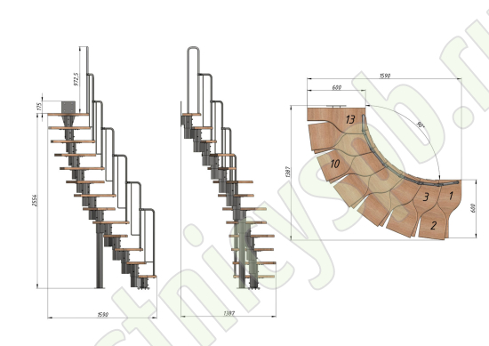 Высота лестницы 2340 - 3360 (13 ступеней) мм