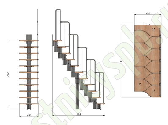 Высота лестницы 1980 - 2880 (11 ступеней) мм