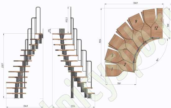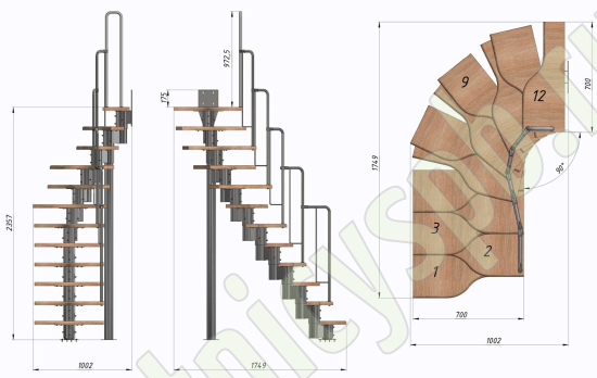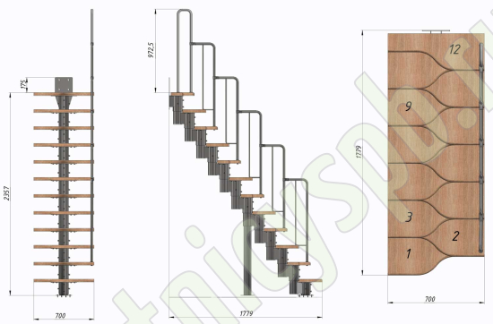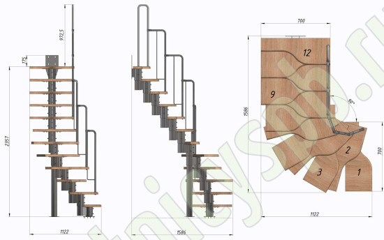 Высота лестницы 2160 - 3120 (12 ступеней) мм