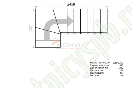 Модульная лестница Фаворит 225 2250-2350, Белый, Бук, Нержавеющая сталь