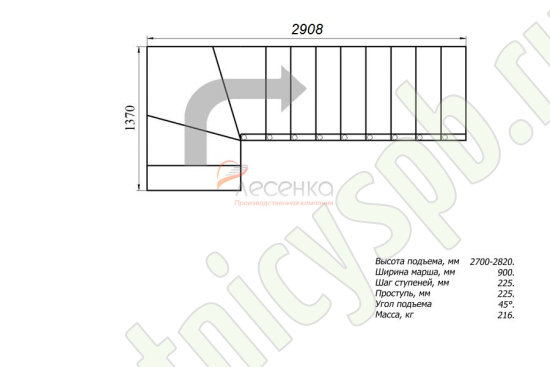 Модульная лестница Фаворит 225 2700-2820, Серый, Бук, Нержавеющая сталь