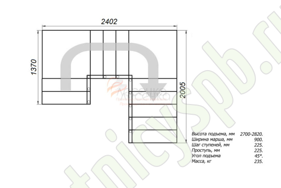 Модульная лестница Комфорт 225 2700-2820, Белый, Бук, Нержавеющая сталь