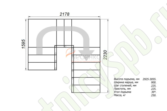 Высота лестницы 2925 - 3055 мм
