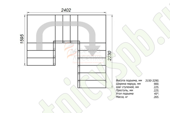 Высота лестницы 3150 - 3290 мм