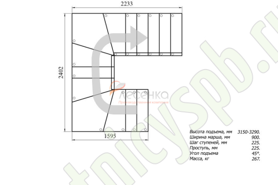 Высота лестницы 3150 - 3290 мм