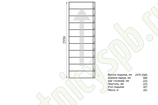 Модульная лестница Стандарт 2475-2585, Серый, Лиственница, Нержавеющая сталь