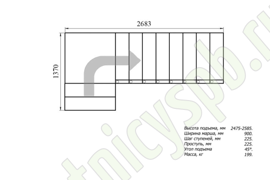 Модульная лестница Статус 225 2475-2585, Черный, Лиственница, Нержавеющая сталь
