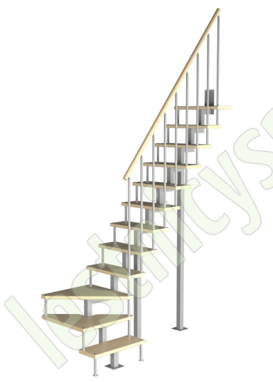 Модульная малогабаритная лестница Компакт 2700-2925, Серый, Сосна, Нержавеющая сталь