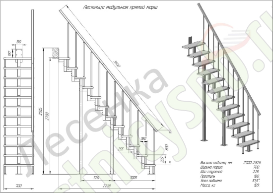 Высота лестницы 2700 - 2925 мм
