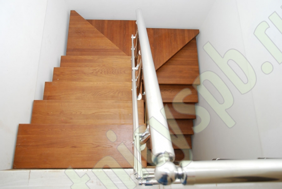 Ступени этого варианта лестницы изготовлены из сращенной сосны категории АВ, без какого-либо покрытия.