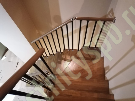 Ступени лестницы изготовлены из дерева категории А/В паркетной склейки без какого-либо покрытия. Вы можете заказать у нас предварительную профессиональную покраску деревянных элементов материалами БИОФА в широкий спектр цветов (стоимость зависит от количества ступеней).