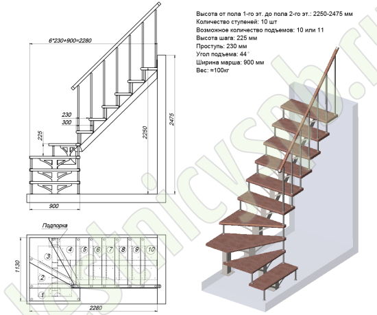 Возможно изготовление лестницы по индивидуальным размерам от 4 недель