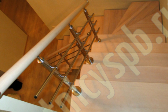 Ступени лестницы изготовлены из дерева категории А/В паркетной склейки без какого-либо покрытия. Вы можете заказать у нас предварительную профессиональную покраску деревянных элементов материалами БИОФА в широкий спектр цветов (стоимость зависит от количества ступеней).