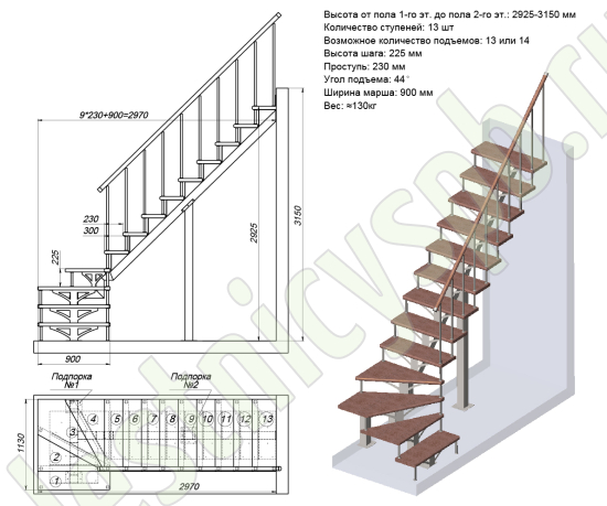 Возможно изготовление лестницы по индивидуальным размерам от 4 недель