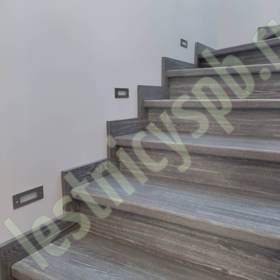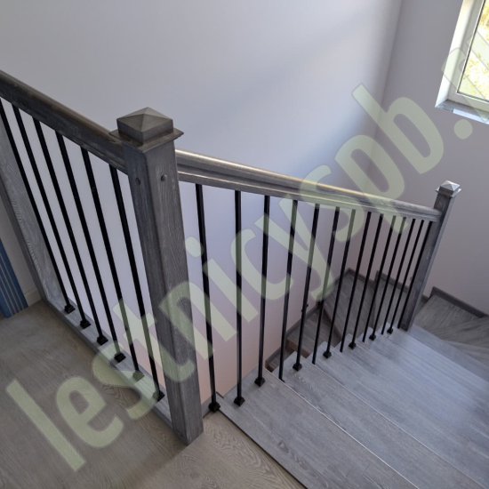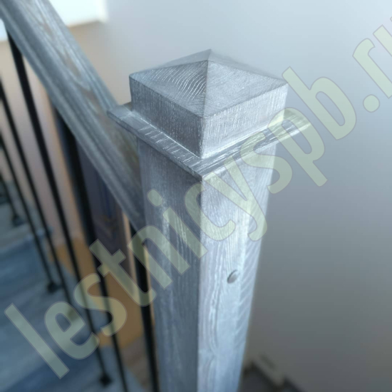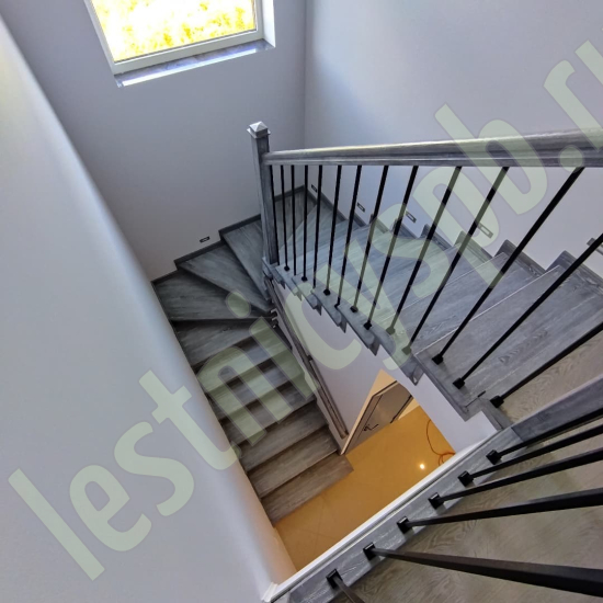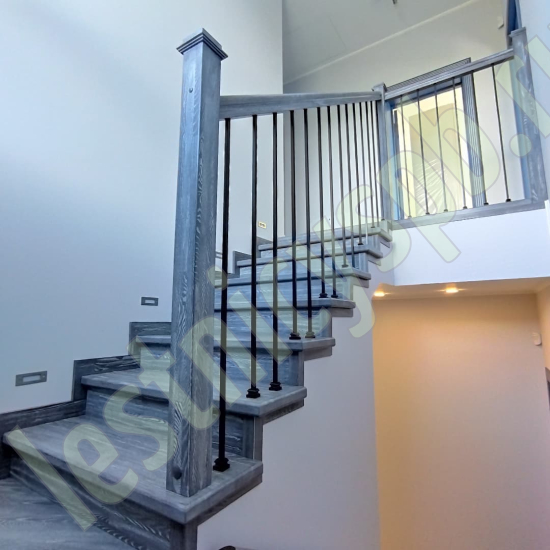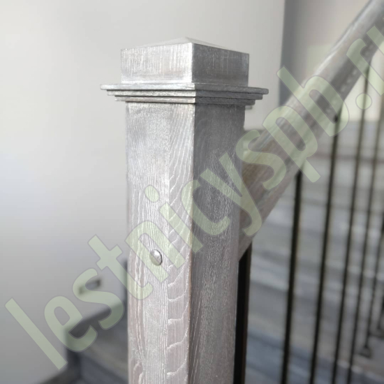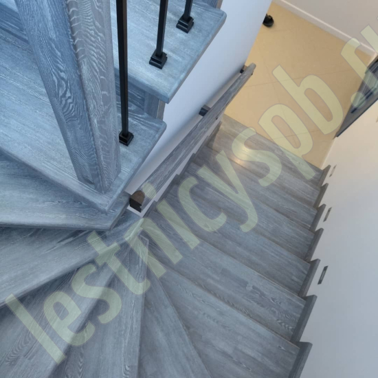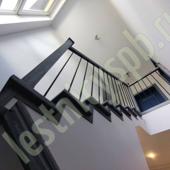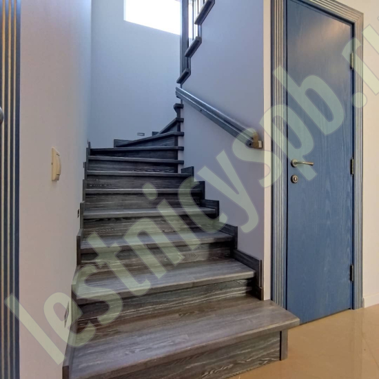 Подступенники, фальш-косоуры и сапожки (пристенной плинтус) выполнены из дуба.