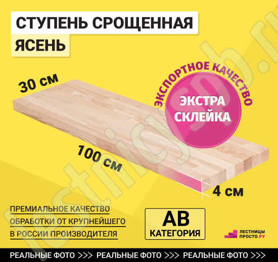Данная ступень изготовлена из срощенного ясеня категории А/В.